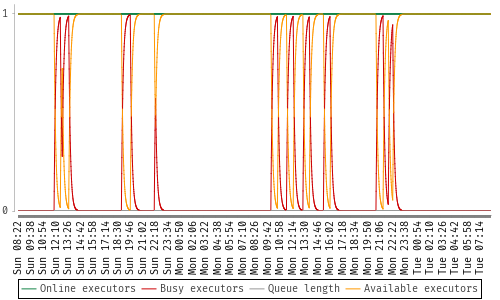 Note: The number of busy executors and the number of available executors need not necessarily be equal to the number of online executors as executors can be suspended from accepting builds and thus be neither busy nor available.